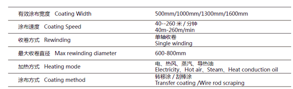 集放料、涂布、烘干、熱風(fēng)循環(huán)、牽引、分切、收卷等生產(chǎn)工序一機(jī)完成。