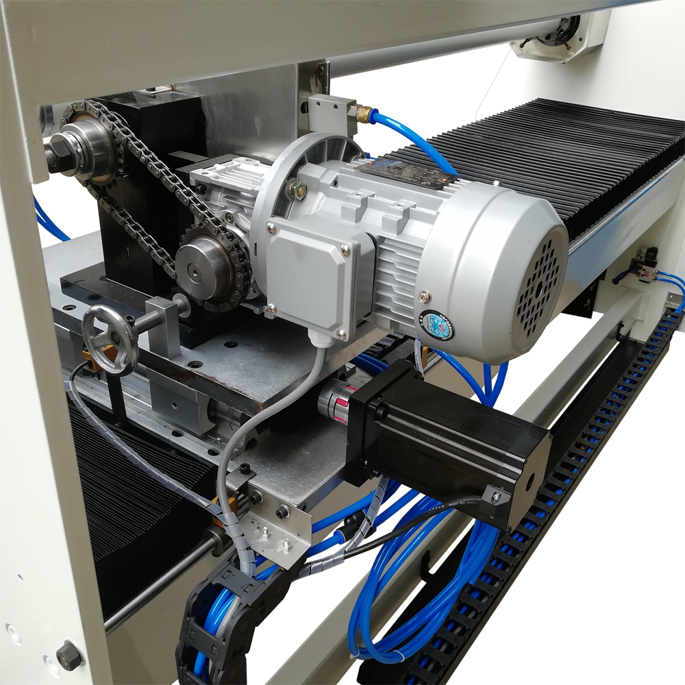 2. 電機控制系統(tǒng)為PLC可程式控制器,同軸中可設(shè)定2種尺寸,電腦于切割時自動調(diào)整切割寬度